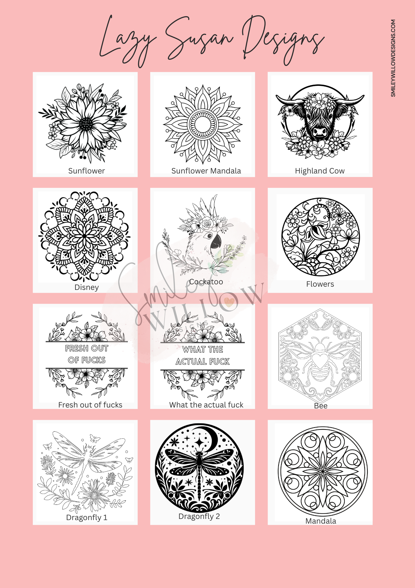 With your ticket you will receive 2 x 25cm lazy susans with a lasered design of your choice, one pack of acrylic paint pens to share with your guest and 2 complementary drinks on arrival.